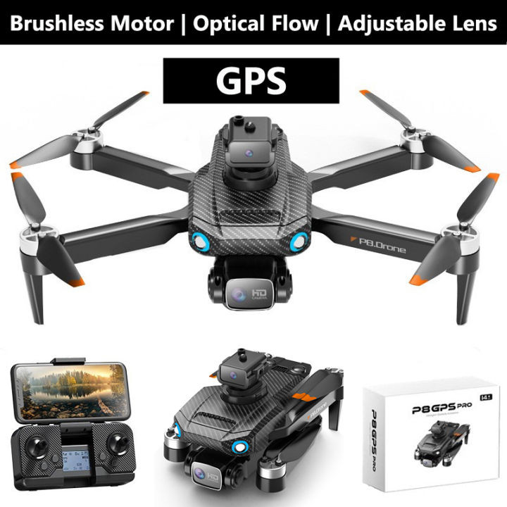 P8 Pro Drone HD سه دوربین هلیکوپتر GPS RC موتور براشلس اسباب بازی های حرفه ای تاشو کوادکوپتر