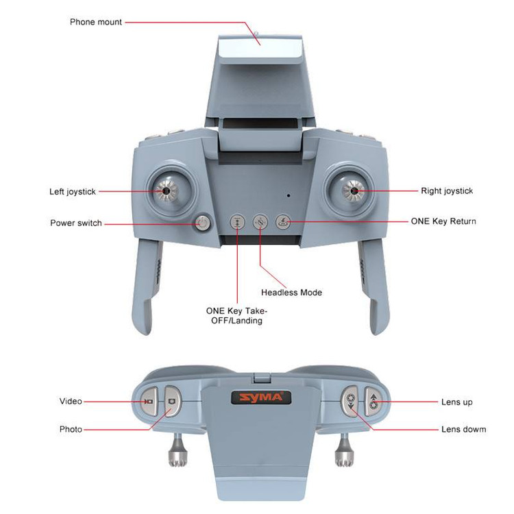 ریموت کنترل کوادکوپتر سایما X30 دارای فرکانس ۲.۴ و ۵ گیگا هرتز بوده و ۴ کاناله است. این ریموت کنترل دارای طراحی بسیار ارگونومی و مناسب بوده و با گرفتن آن در دستان خود حس راحتی و کنترل بالا و دلپذیری خواهید داشت. این ریموت کنترل زیبا از ۴ عدد باتری قلمی AA تغذیه می شود. اپراتور کوادکوپتر سایما X30 می تواند بسته به محل و لوکیشن پرواز فرکانس مورد نظر خود را برای ارتباط با دستگاه را انتخاب کند. همچنین این ریموت کنترل تا فاصله ۳۵۰ متر میتواند با کوادکوپتر ارتباط برقرار کند که در مقاسیه با مدلهای قبلی عددی بسیار قابل قبول می باشد.