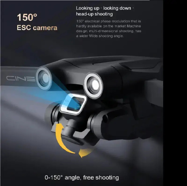 دارای گیمبال ۱ محوره تغییر دوربین تا زاویه ۱۵۰ درجه
