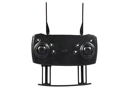ریموت کنترل هلی شات E58 از نوع 2.4 GHz و چهارکاناله می باشد و از سه عدد باتری قلمی سایز AA تغذیه می کند . این ریموت کنترل می تواند برد رادیویی معادل 100 متر را برای پرواز شما فراهم کند . رادیوکنترل این پهپاد بسیار سبک است و از در دست نگاه داشتن آن در کل طول پرواز خسته نخواهید شد . براحتی در نقطه ای بایستید و کوادکوپتر را از خود دور سازید . برد رادیویی اعلامی در شرایط آزمایشگاهی بوده و بی شک در محیط کاربری به دلیل فرکانس ، پارازیت ، امواج مخرب و … به خصوص در مراکز شهر ها این میزان می تواند دارای اختلافات بسیار زیادی باشد .