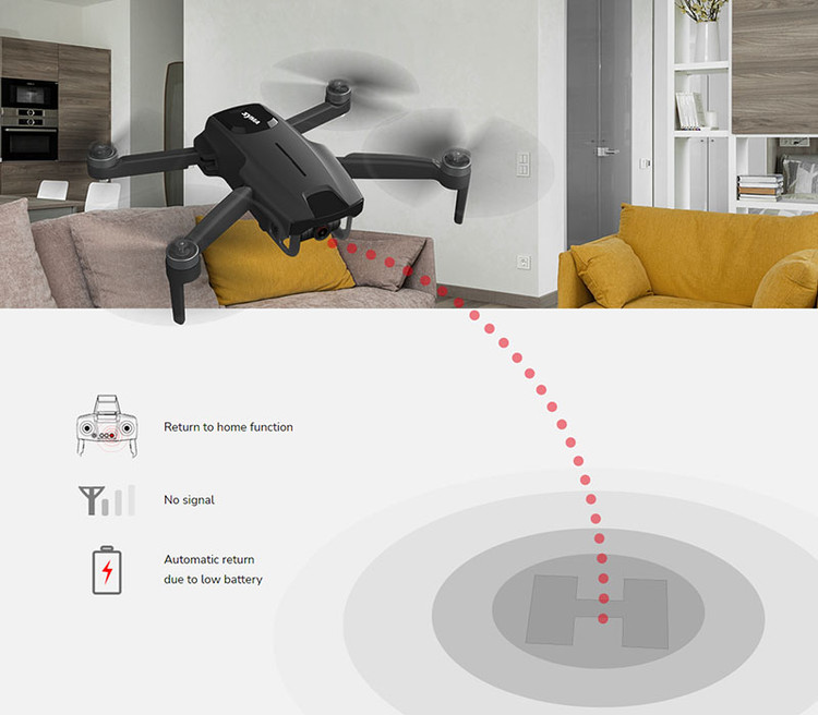 یکی از قابلیتهایی که در این کوادکوپتر مدرن وجود دارد، ویژگی بازگشت به خانه خودکار است. با فشردن دکمهای که برای این منظور روی کنترلر تعبیه شده است، میتوانید به هلیشات خود فرمان دهید تا به آشیانه بازگردد. این ویژگی در هنگام کمبودن شارژ باتری و هنگامیکه ارتباط رادیویی کنترلر با پهپاد ضعیف است، بهصورت خودکار عمل میکند و کوادکوپتر را به مکانی که از آن برخاسته است، بازمیگرداند