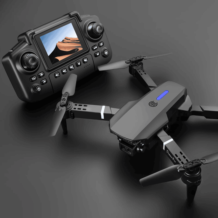 یکی از ویژگیهای خاص E88 Screen، کنترلری با نمایشگر داخلی است. این نمایشگر با روشنایی پایین اطلاعاتی مثل وضعیت باتری و تنظیمات پرواز را نشان میدهد. برد واقعی این ریموت کنترل در فضای باز حدود ۳۰ متر است، که برای استفادهی مبتدی کاملاً کافی است.