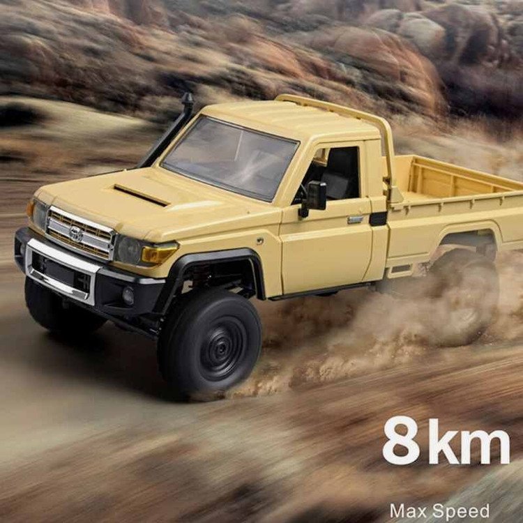 ماشین کنترلی آفرود مدل MN82s نسخه ارتقایافته لندکروز LC79، یک اسباببازی حرفهای و فوقالعاده واقعی برای علاقهمندان به دنیای آفرود و ماشینهای RC است. طراحی ظاهری این مدل با الهام از خودروی واقعی تویوتا لندکروز LC79 انجام شده و تمامی جزئیات ظاهری مثل سپرهای آفرودی، گلگیرهای عضلانی، باربند، چراغهای LED جلو و عقب و رنگآمیزی واقعی بهخوبی در آن پیادهسازی شده است. این مدل در مقیاس 1:12 تولید شده و از پلاستیک فشرده مقاوم در ساخت بدنه استفاده شده که آن را مناسب مسیرهای سخت و بازیهای پرتحرک کرده است.